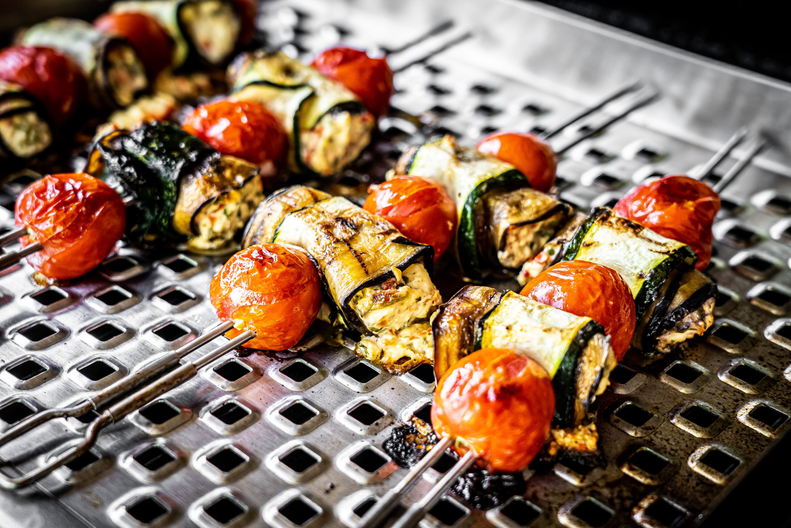 Brochettes de courgettes farcies au ricotta et tomates cerises